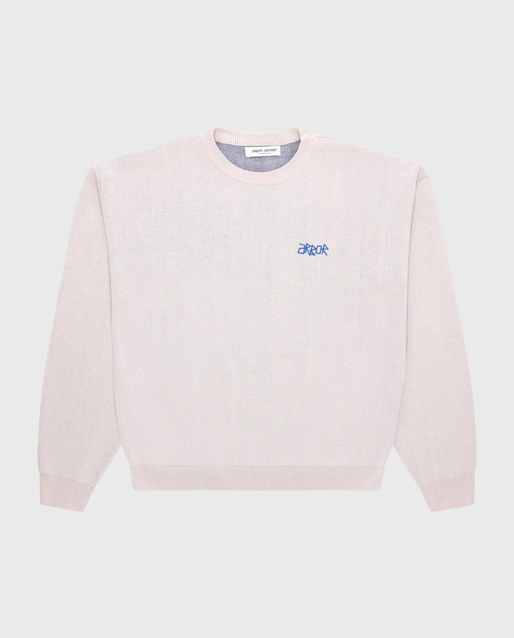 Het paradepaardje van Arbor Antwerp is de categorie knitwear! Deze beige knit komt met een subtiel logo op de linkerborst. De achterkant bevat een grote Arbor print met een ode aan de collectie.