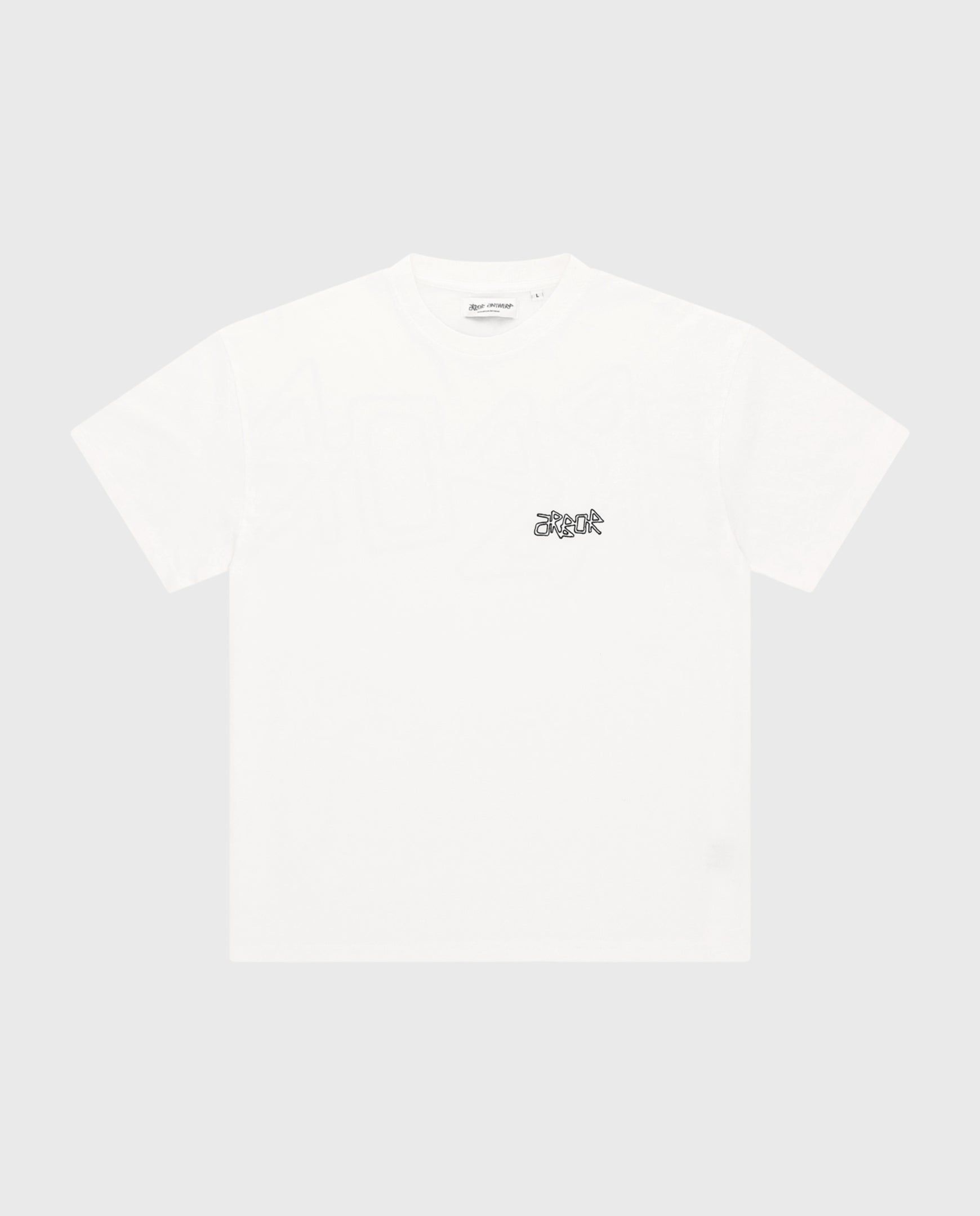 Wit t-shirt van Arbor Antwerp is gemaakt van 100% organisch katoen. Een grote zwarte backprint op de rug met "Arbor". De voorkant bevat het subtiele logo op de linkerborst.