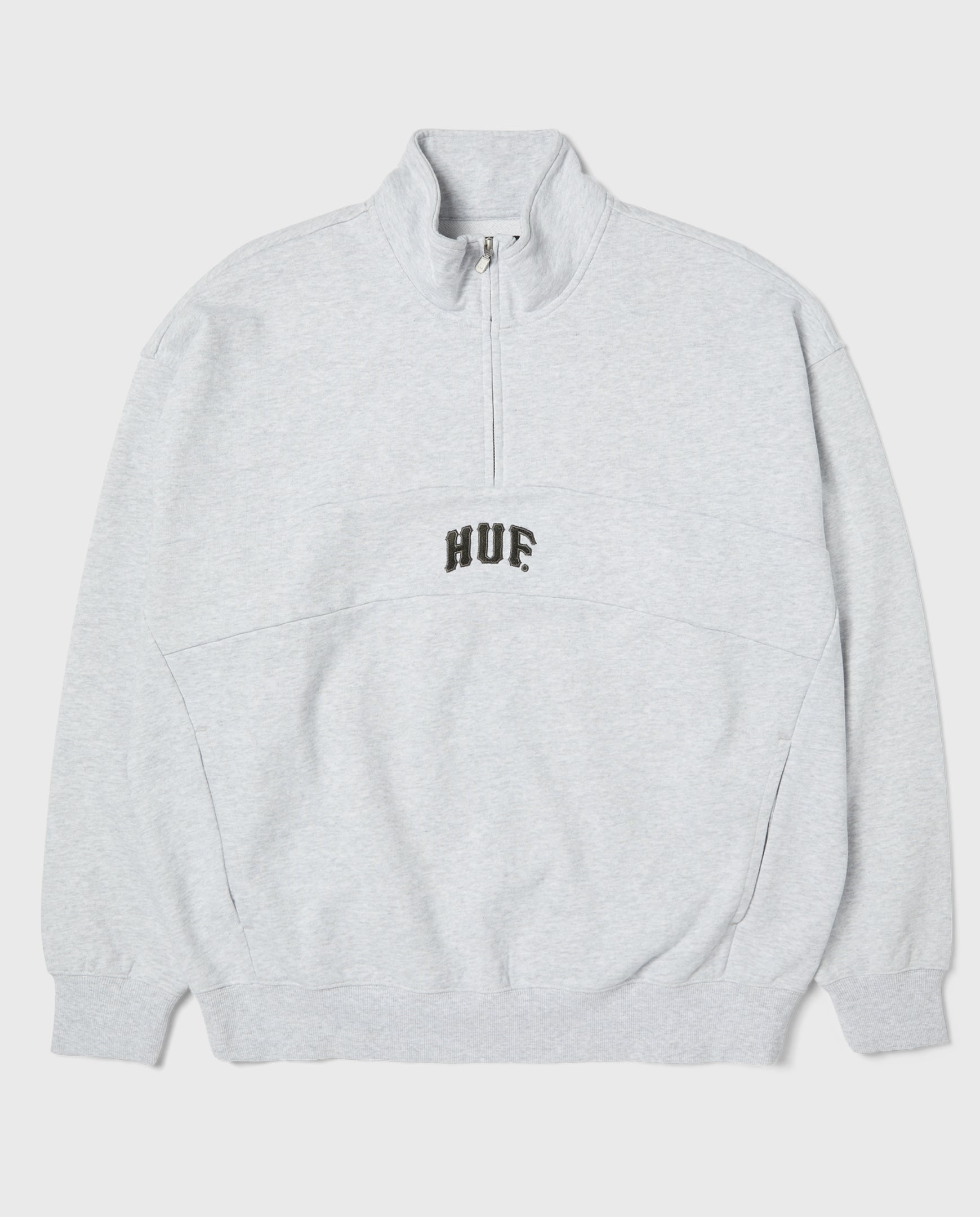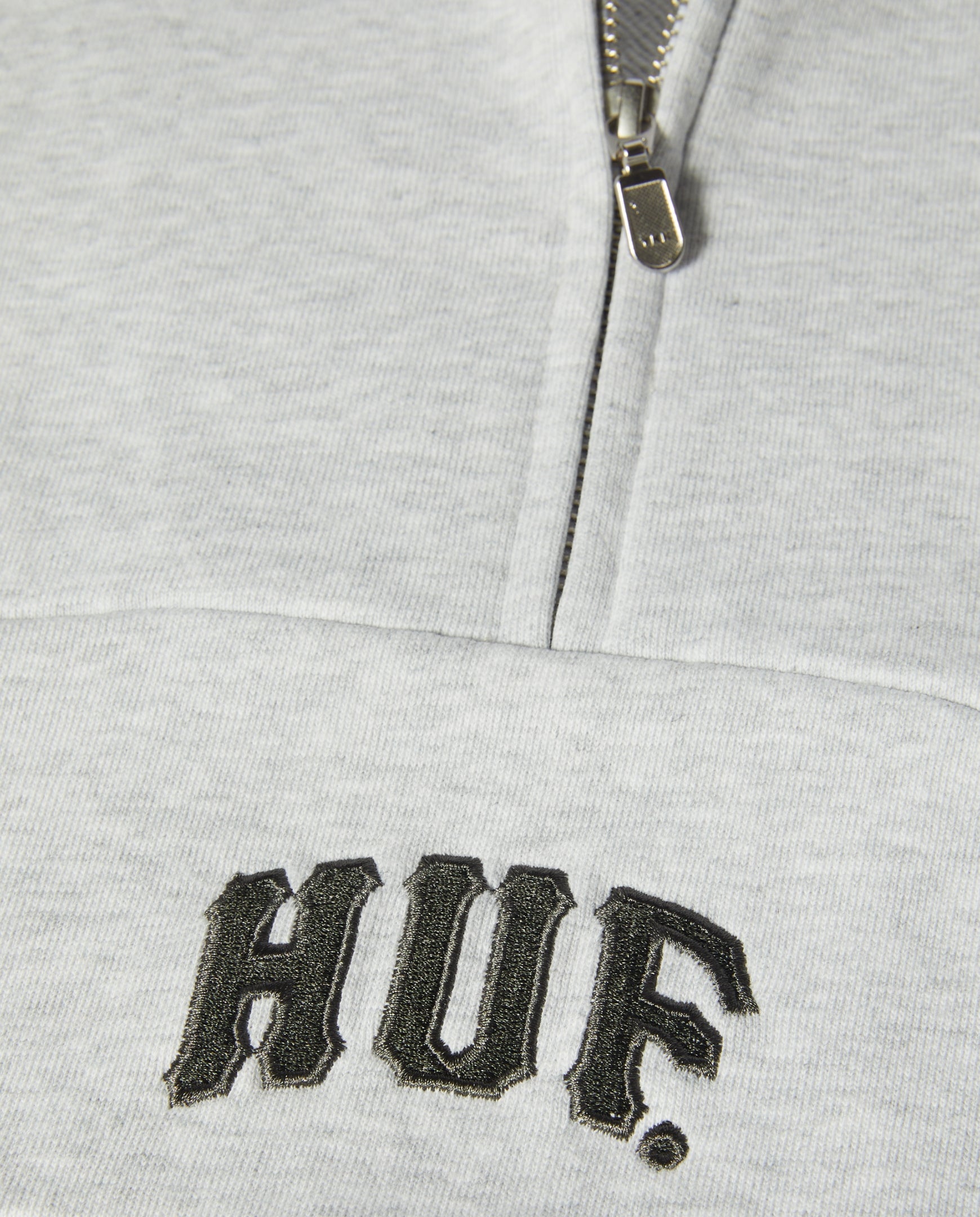 Deze quarter zip van Huf komt in een grijze kleur. Goede basic piece met het arch Huf logo.