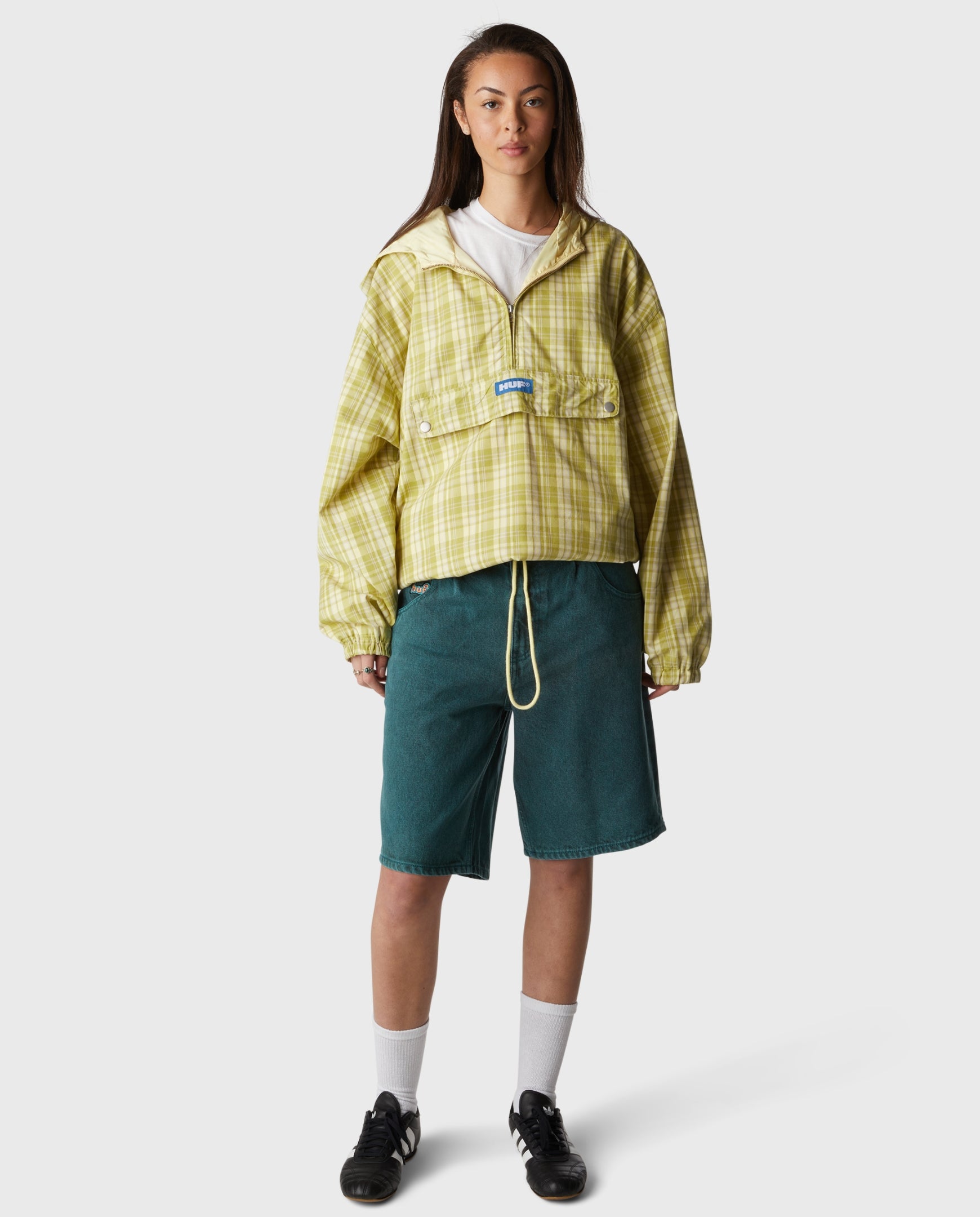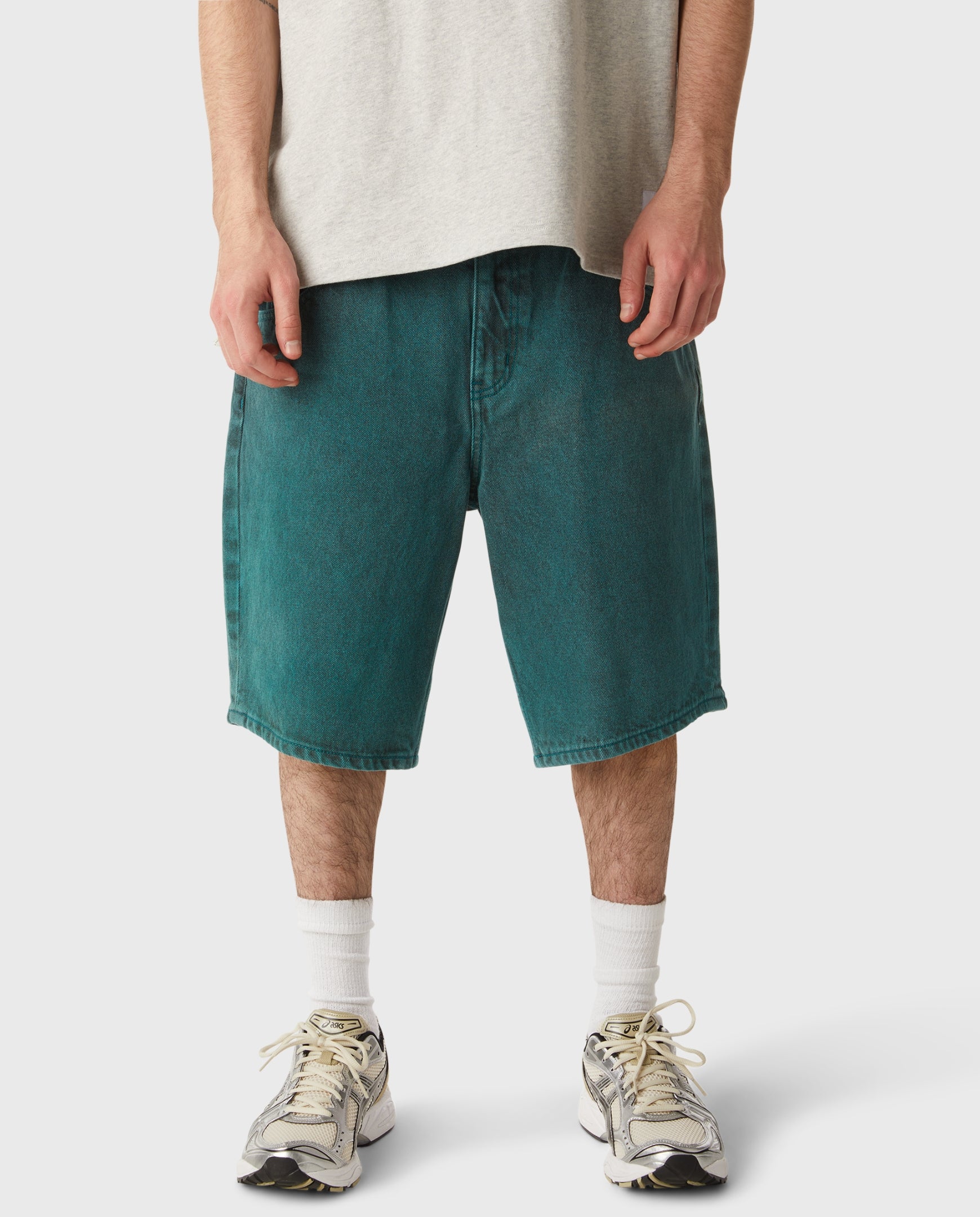 • Baggy fit denim short designed with HUF team rider Brad Cromer
