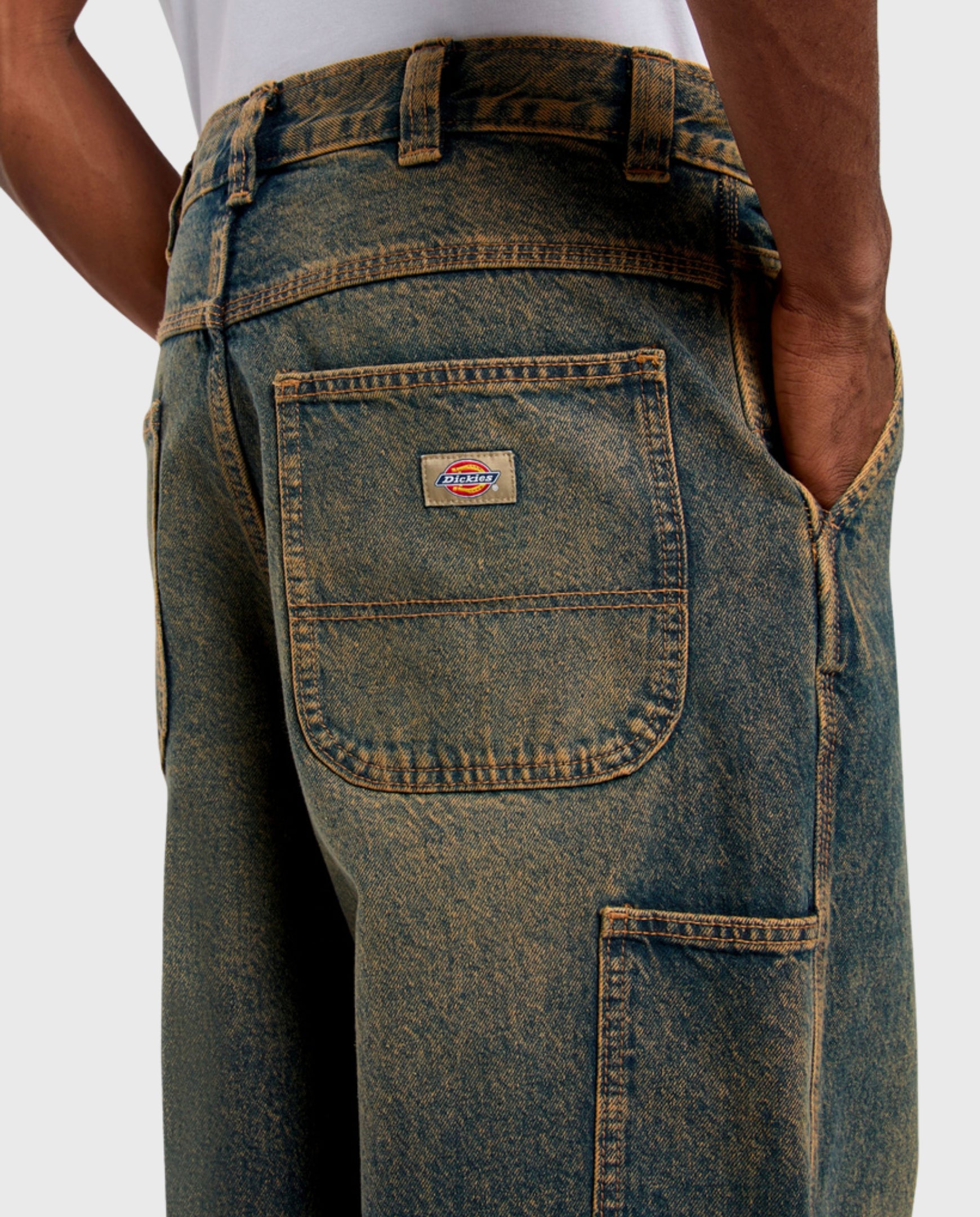 Deze denim van Dickies is een baggy jeans met een coole wassing. De licht gele washing op de jeans maakt deze tot een echte statement jeans. Shop jouw Dickies jeans bij Noble Store.