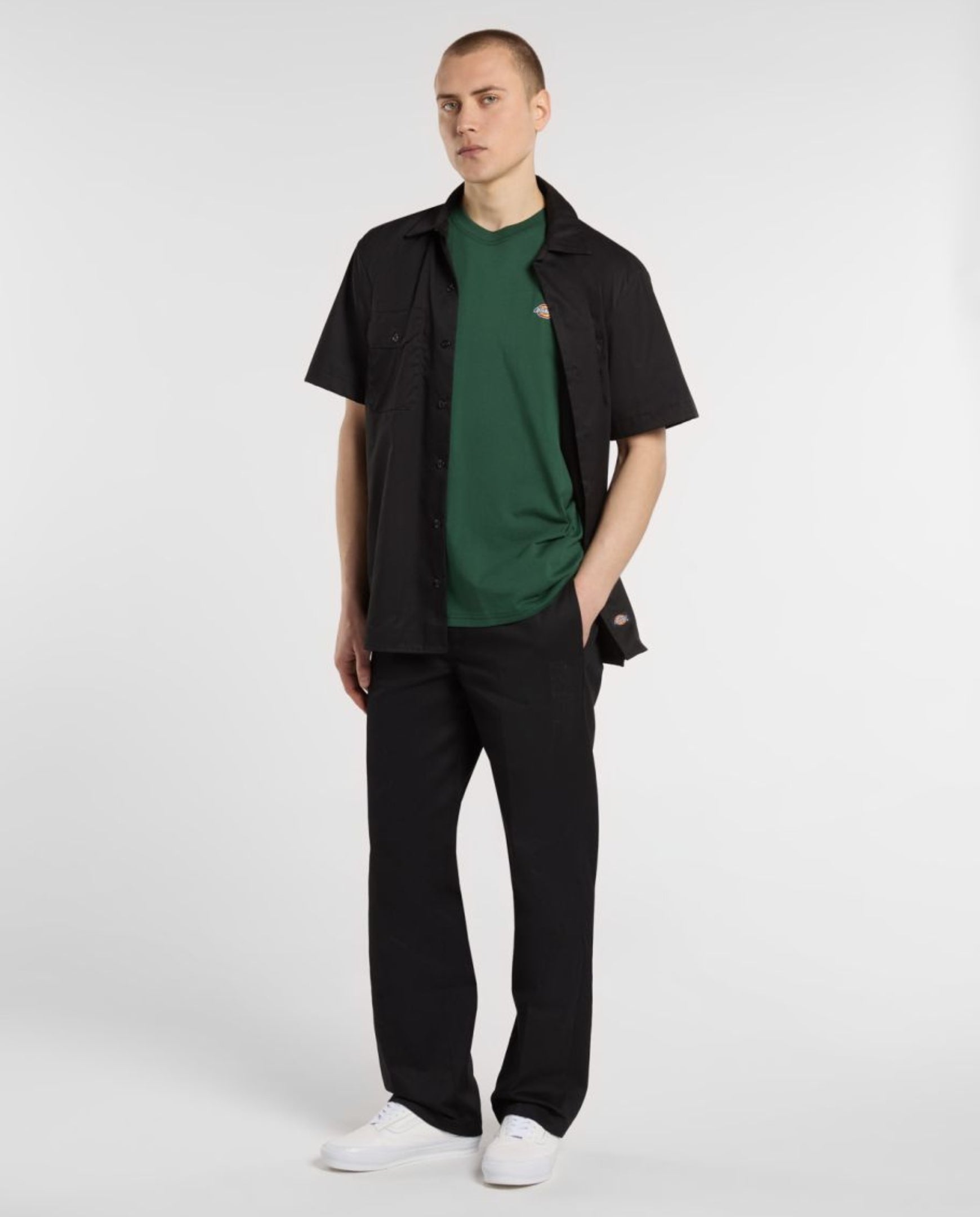Het gekende Mapleton T-Shirt van Dickies. Gemaakt van katoen. Lichtgewicht t-shirt in een dennengroen kleur.