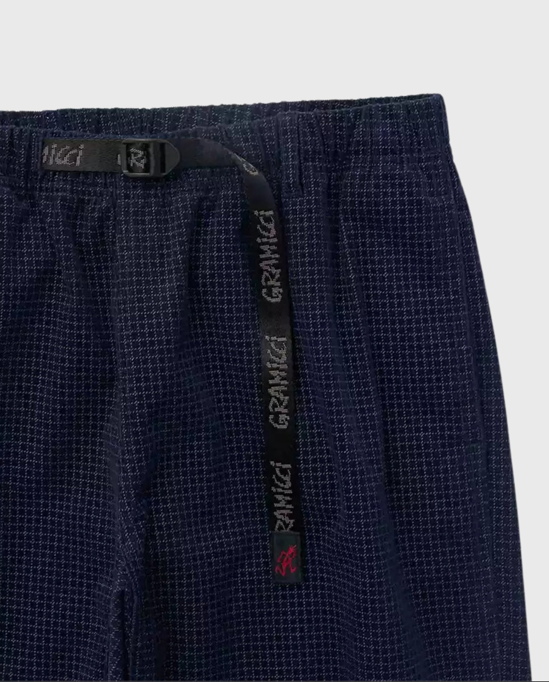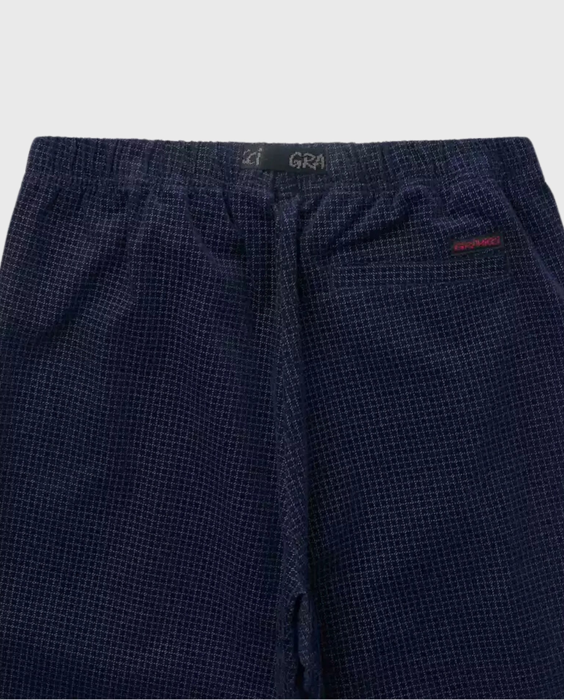 De Grid Check Jam Pants van Gramicci, een moderne interpretatie van een vintage Gramicci broek uit het archief. Deze broek heeft klassieke details zoals een volledige taille sluiting en een enkele achterzak.