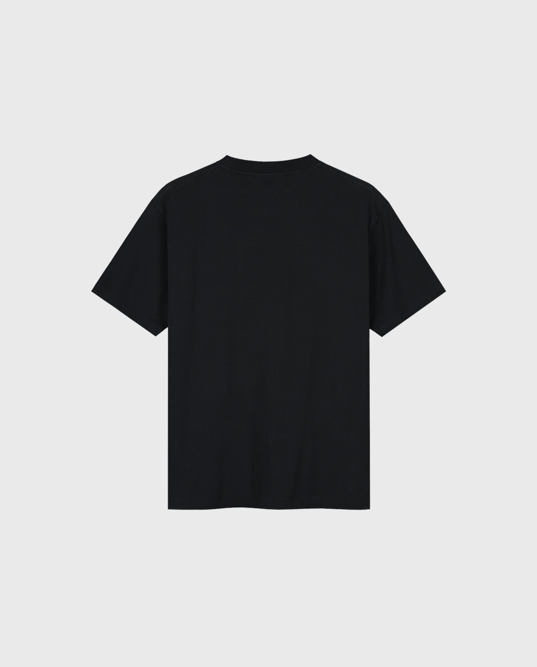 Zwart t-shirt van Olaf met een "paint" Olaf logo op de linkerborst.