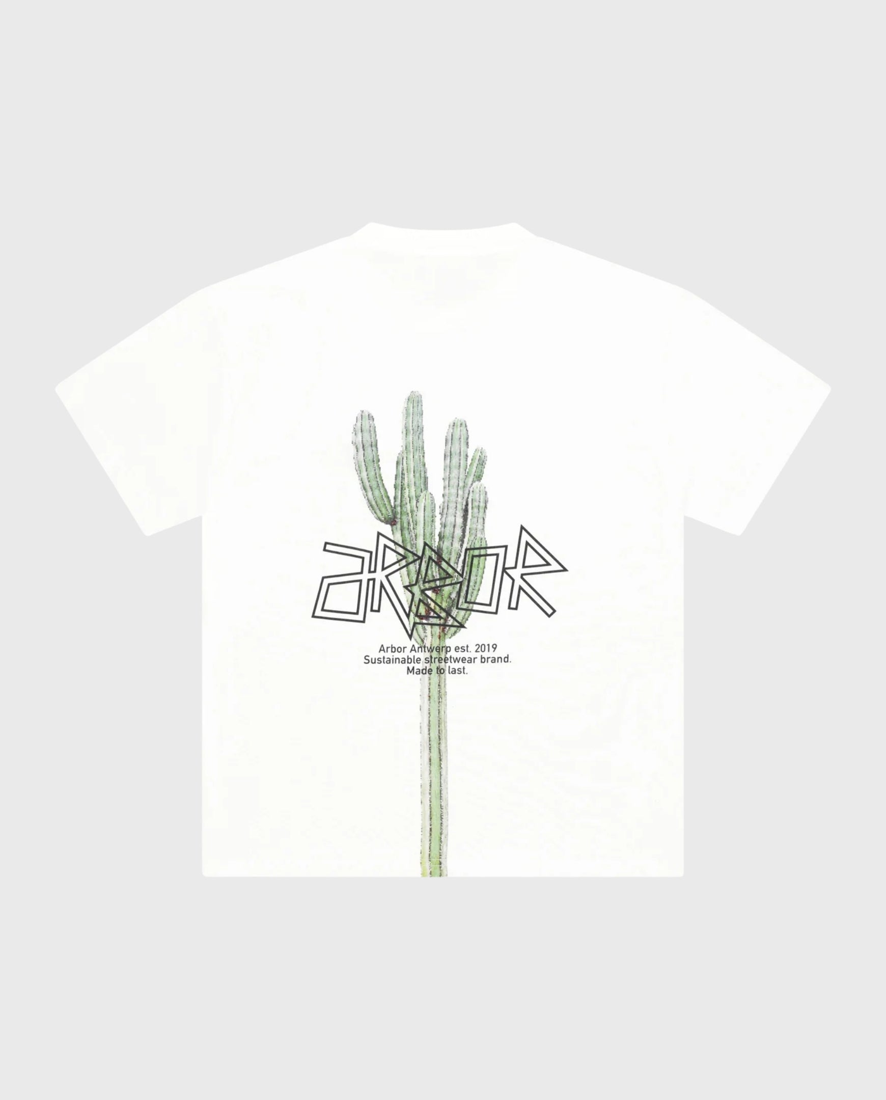 Dit witte Cactus T-shirt van Arbor Antwerp combineert premium comfort met een opvallende graphic. Het is gemaakt van 290-300 GSM 100% premium organisch katoen, wat zorgt voor een zachte en duurzame draagervaring.
