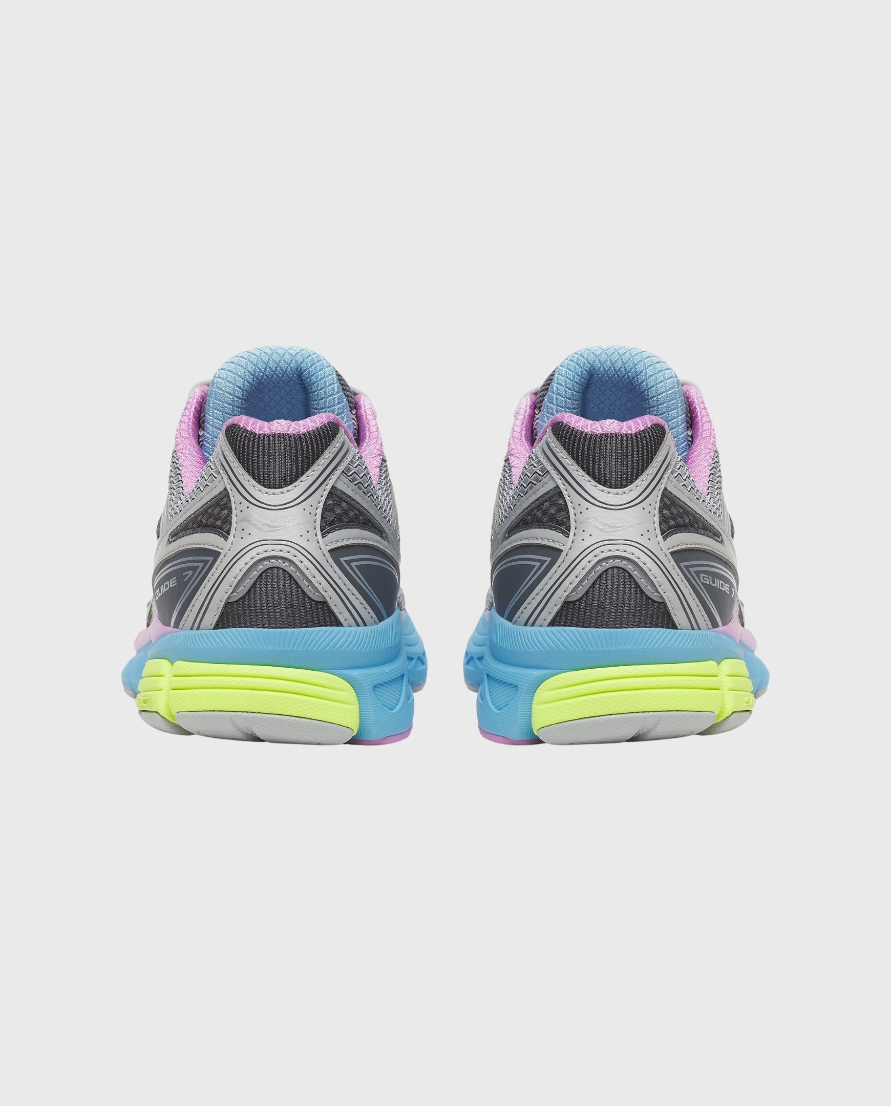 Maak een statement met de Saucony Progrid Guide 7 in de gedurfde Grey / Aqua colorway. Deze sneaker bewijst dat technische ondersteuning en een explosie van kleur perfect samen gaan. De rustige grijze basis wordt tot leven gewekt door een aqua-blauwe tussenzool, paarse voering en felle neongele details. Het is de ideale keuze voor wie niet bang is om op te vallen en tegelijkertijd rekent op de stabiliteit van Saucony's Guide-serie.