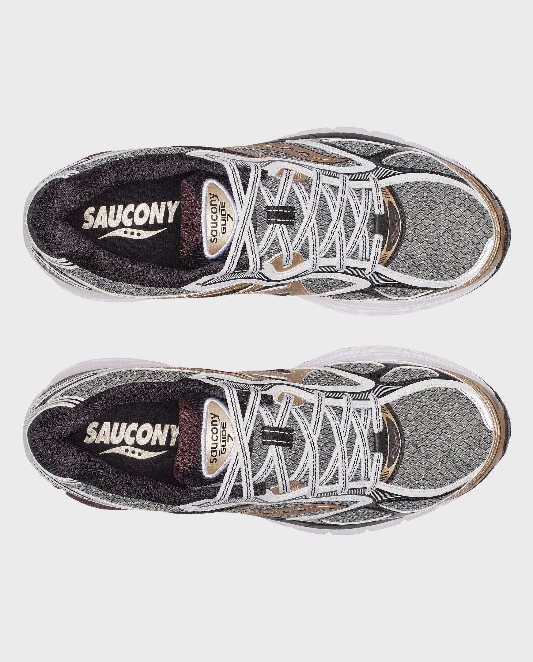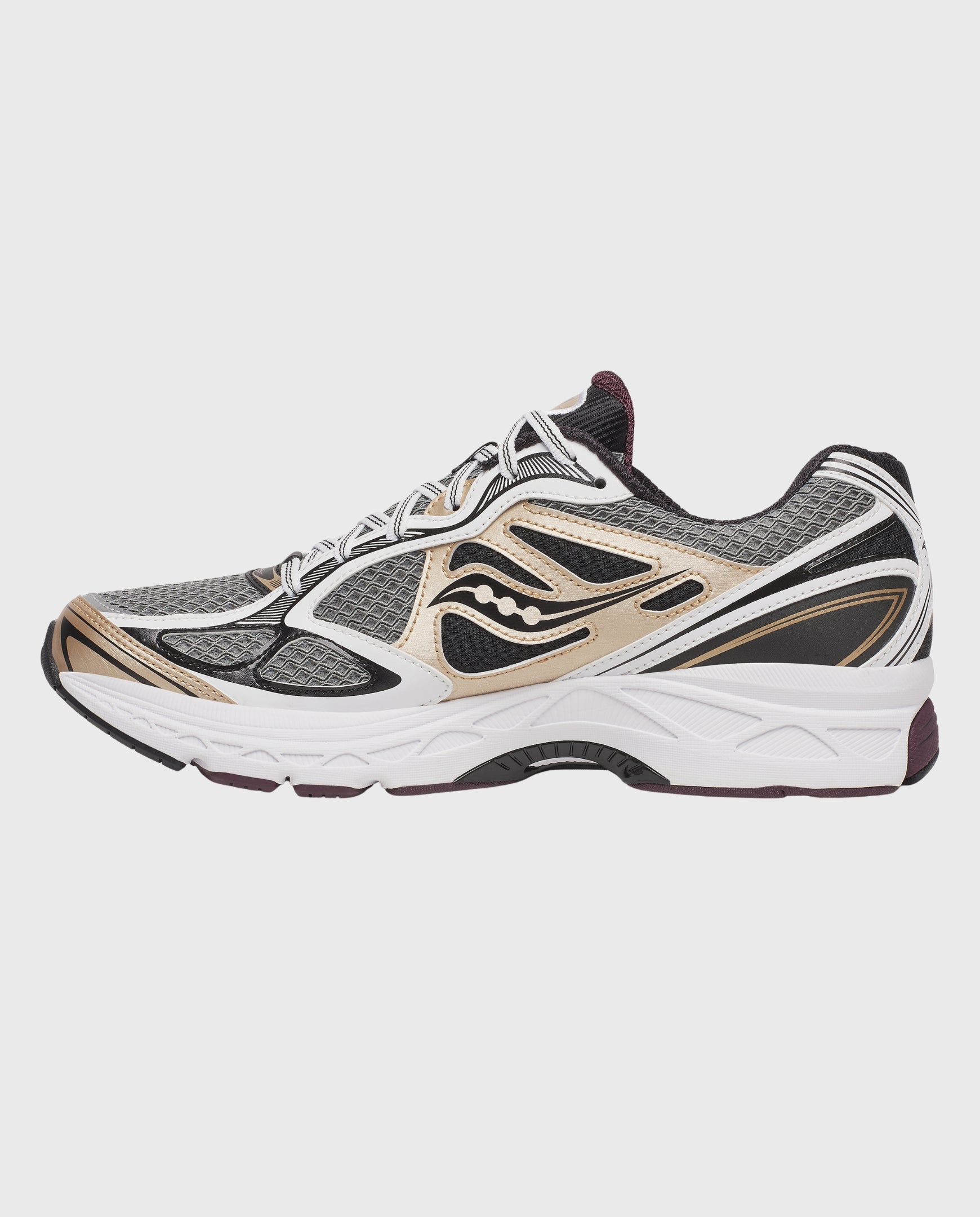 De Saucony ProGrid Guide 7 White / Bronze haalt inspiratie uit de rijke hardlooperfenis van Saucony en geeft die een moderne, verfijnde twist. Het ademende witte mesh bovenwerk wordt versterkt met bronzen overlays, wat zorgt voor een elegante en cleane look die zowel sportief als stijlvol oogt.