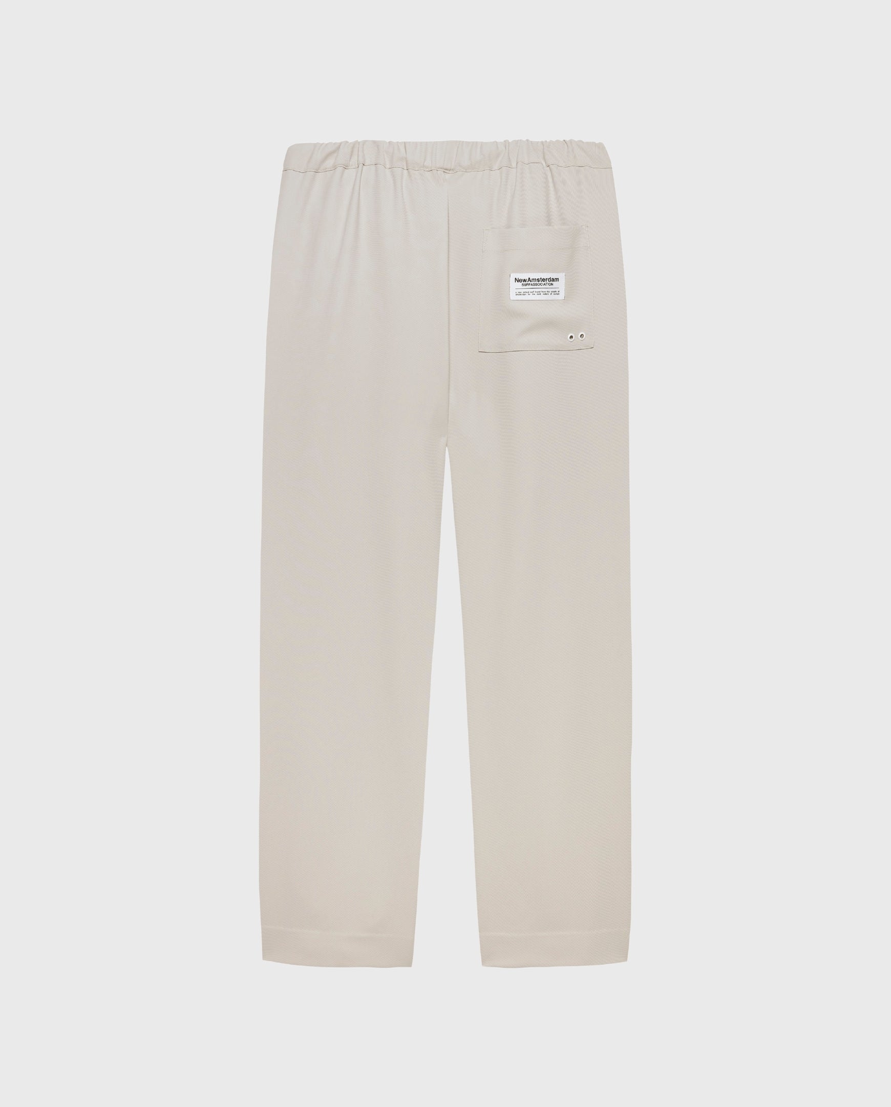 De Work Trousers van New Amsterdam Surf Association in strone grey zijn de ideale combinatie van comfort en clean design. Gemaakt van een premium tencel/katoenmix met een soepele, luchtige feel. De broek heeft een relaxed fit met een mid waist en een rechte, lange pijp die effortless op je sneakers valt.
