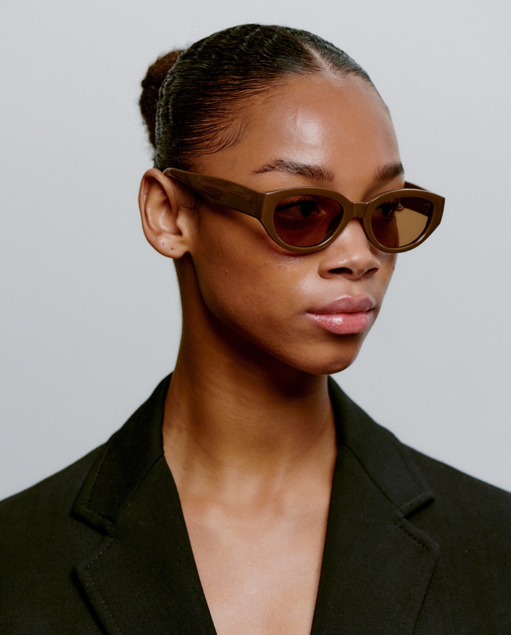 Ontdek de verfijnde stijl van A.Kjaerbede met de Winnie Smoke Transparent-zonnebril bij Noble.