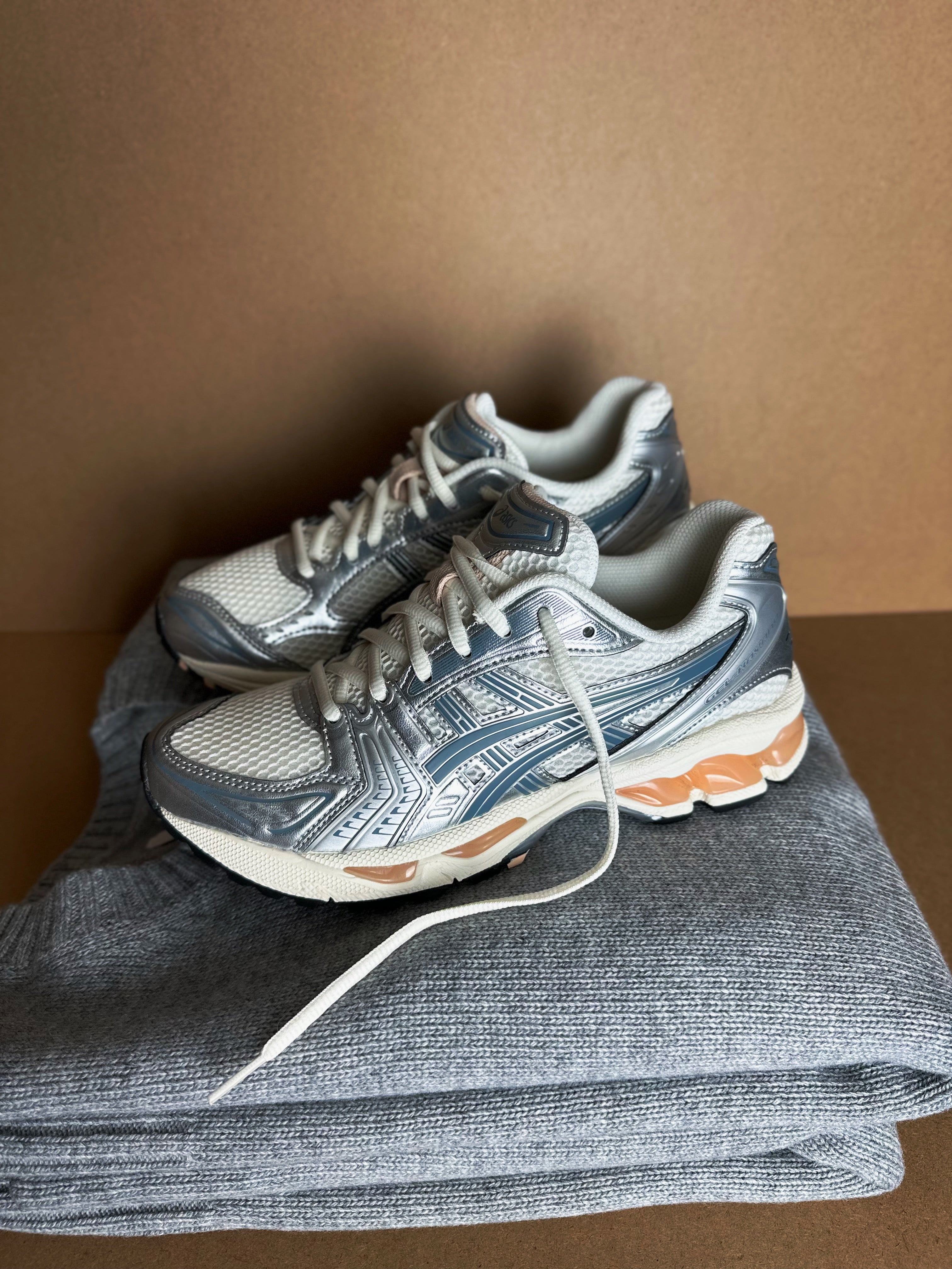 De Asics Gel-Kayano 14 in Cream / Iron Clad brengt de early-2000s running look terug, gecombineerd met moderne performance. Het neutrale cream mesh upper wordt versterkt door iron clad overlays voor een cleane, technische uitstraling.