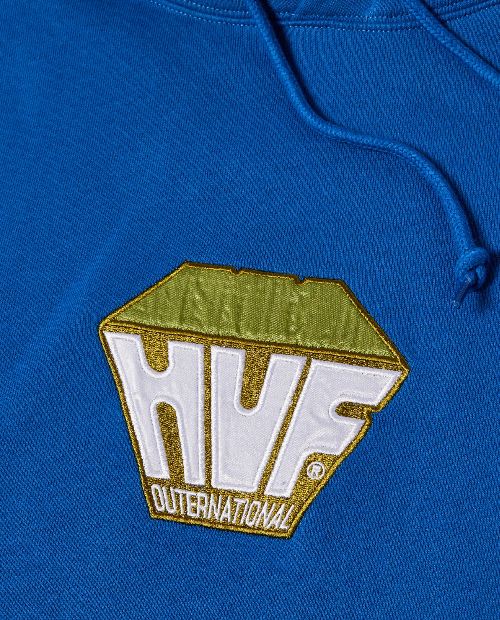 BIG BLOCK! Een uitgesproken logo van HUF op de voorkant, geborduurd. Deze kobalt blauwe hoodie is een leuke toevoeging van kleur aan jouw kleerkast.