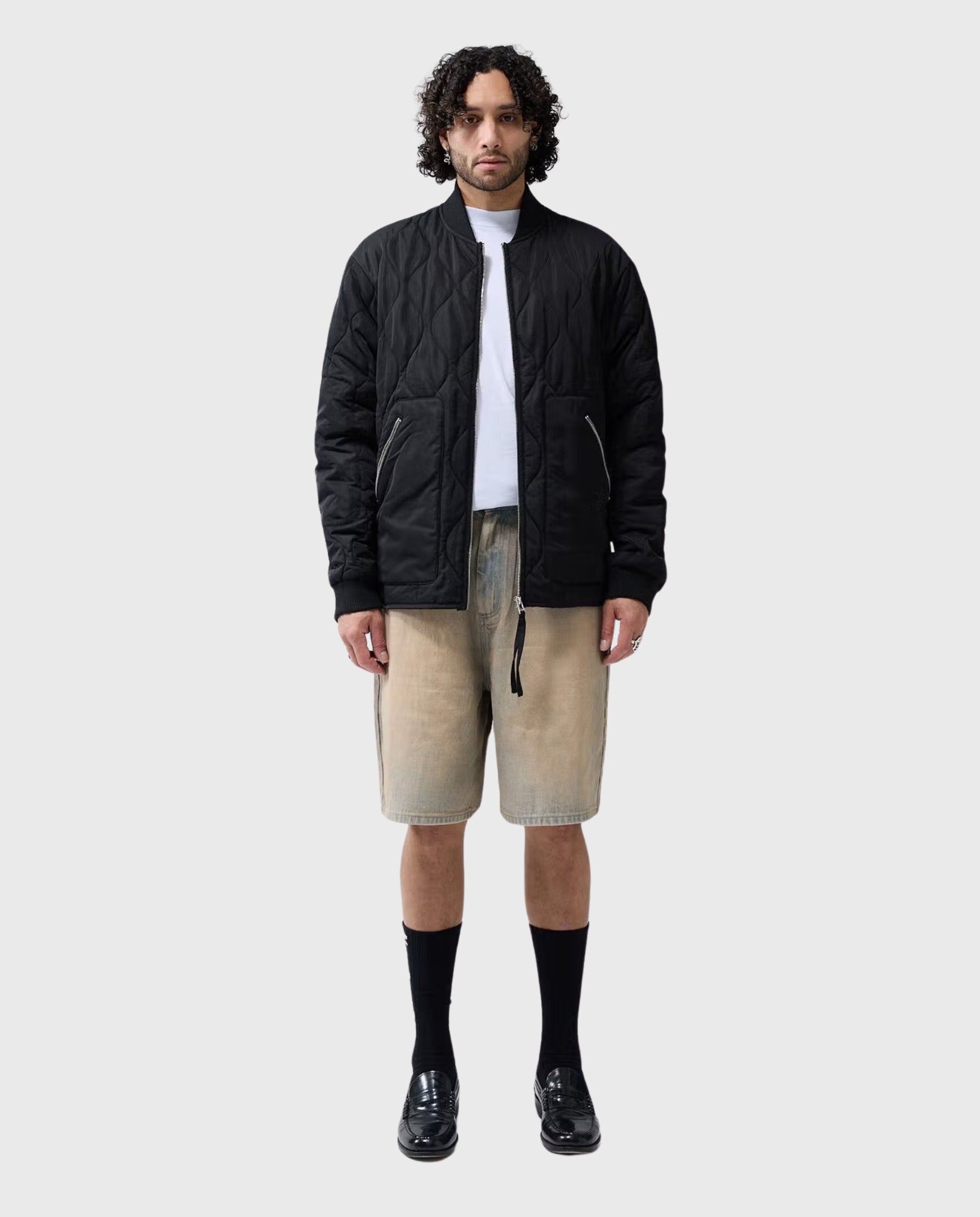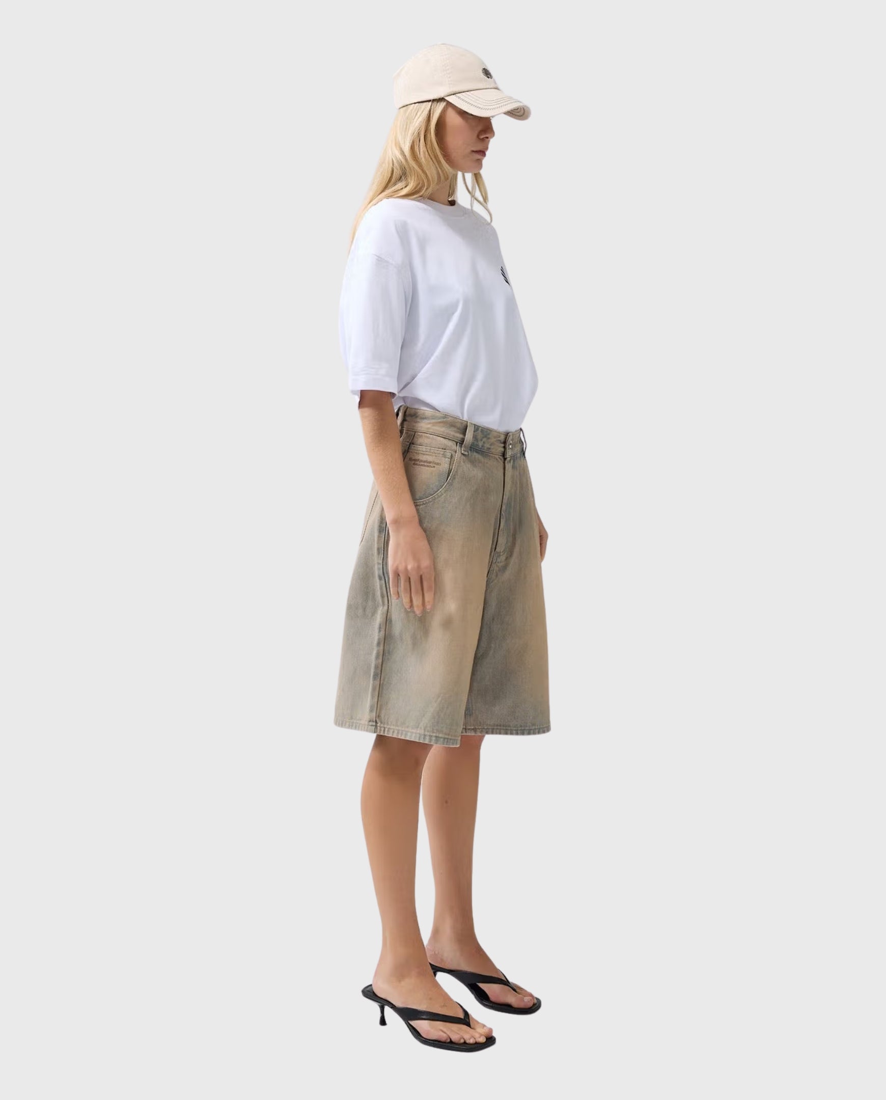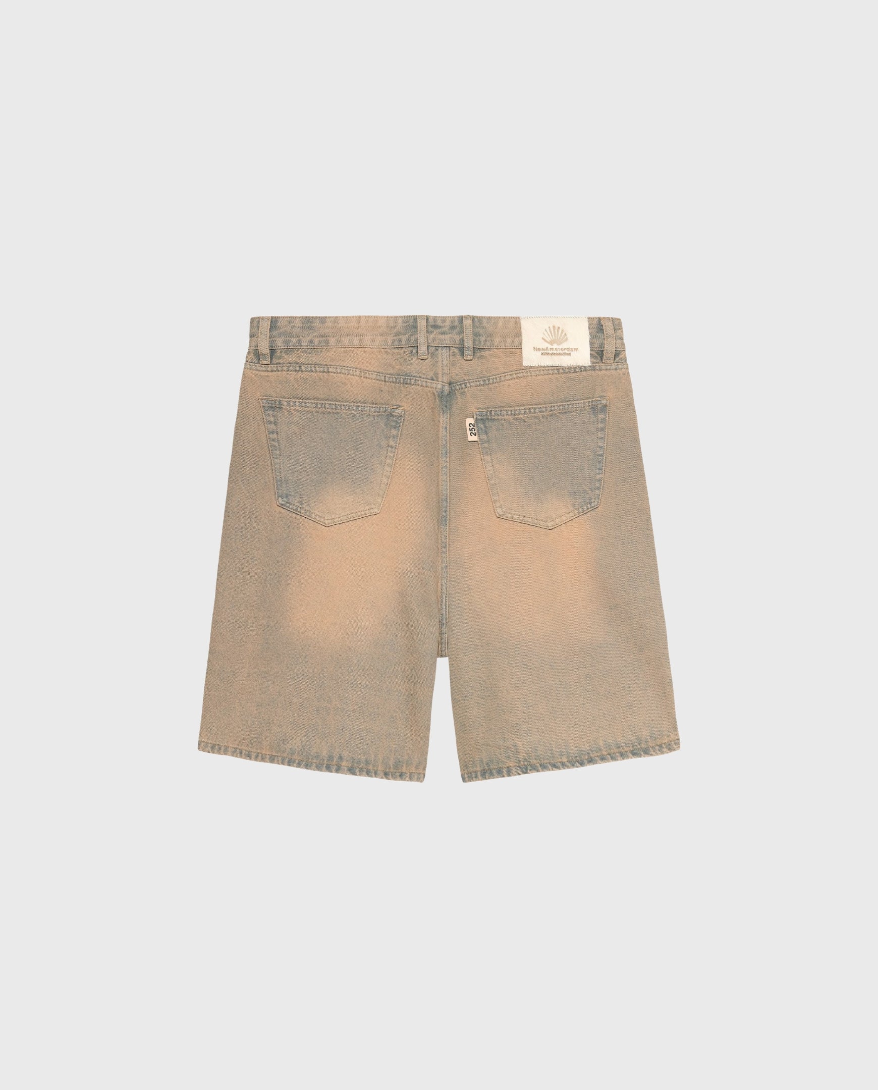 Denim short cut to a relaxed fit with a mid waist and an over knee length. The garment has a fixed waistband is styled with a Metal branded button. the pant includes a New Amsterdam pony hair patch and New Amsterdam name embroidery above the left pocket. These pants are made out of a cotton denim.