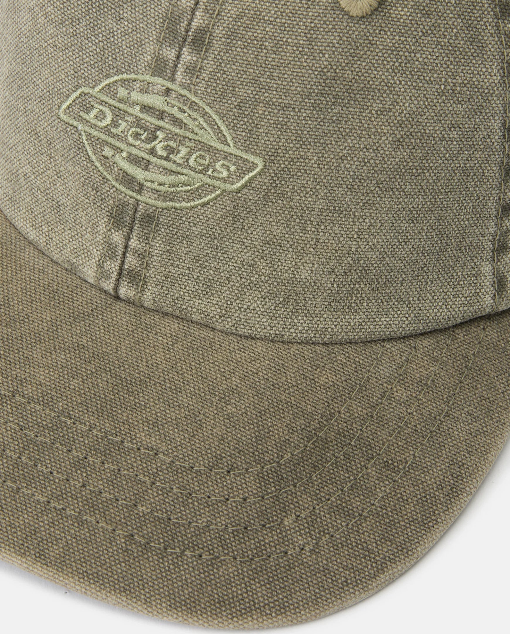 Groen afgewassen pet van Dickies. Geborduurd logo op de voorkant.