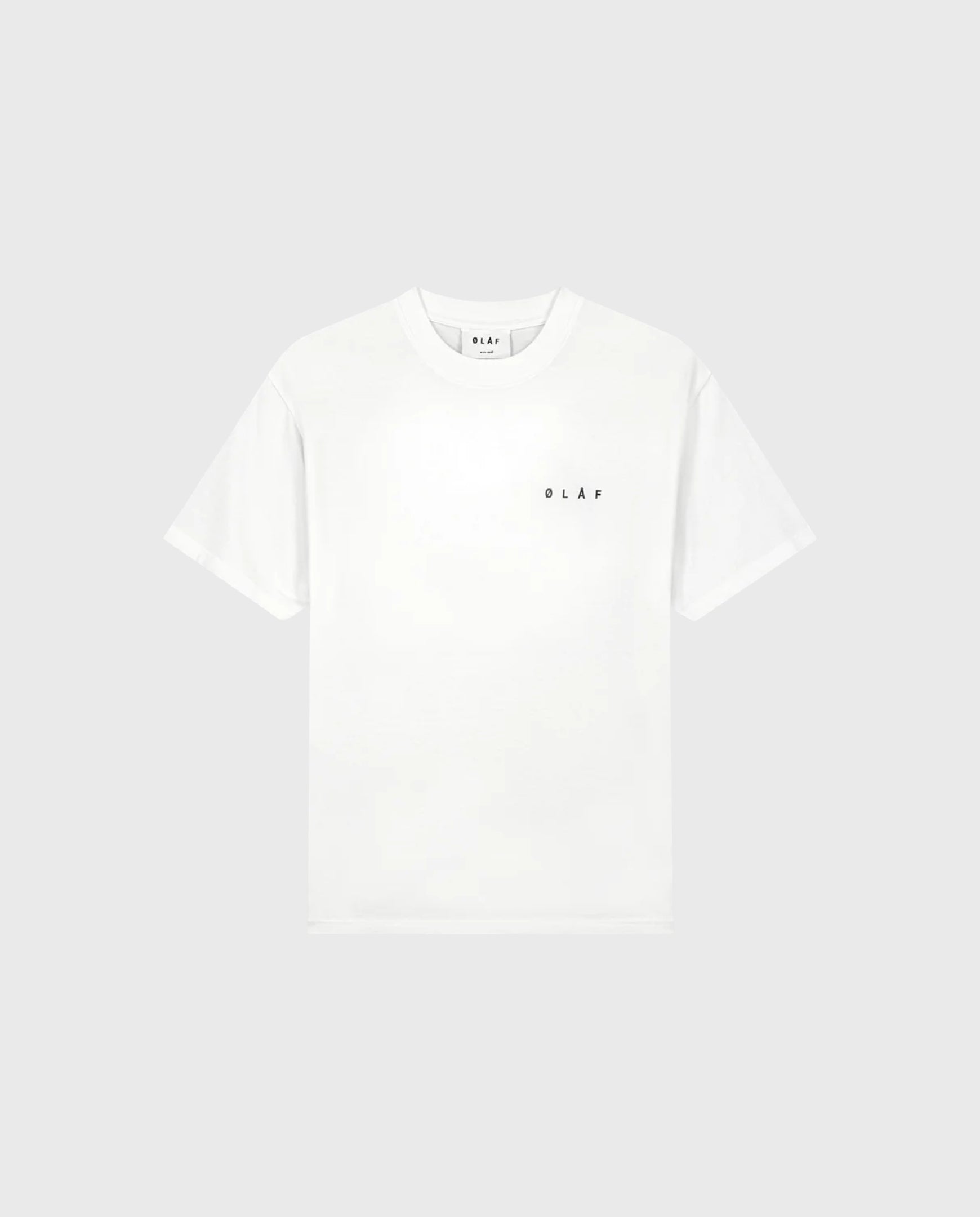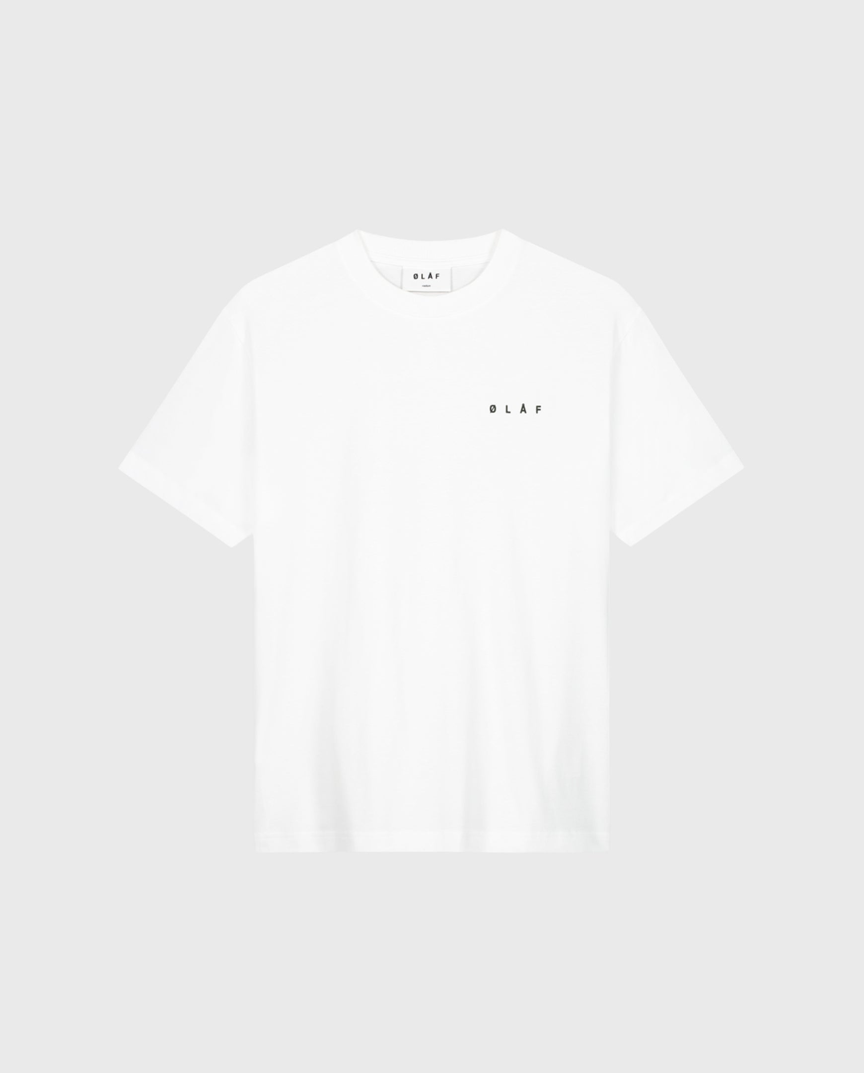 Het iconische ØLÅF Face T-Shirt in het wit. Een leuke twist, op een alledaags t-shirt. Het iconische Olaf logo op de achterkant en klassieke sans logo op de voorkant. Gemaakt van 100% katoen in Portugal.
