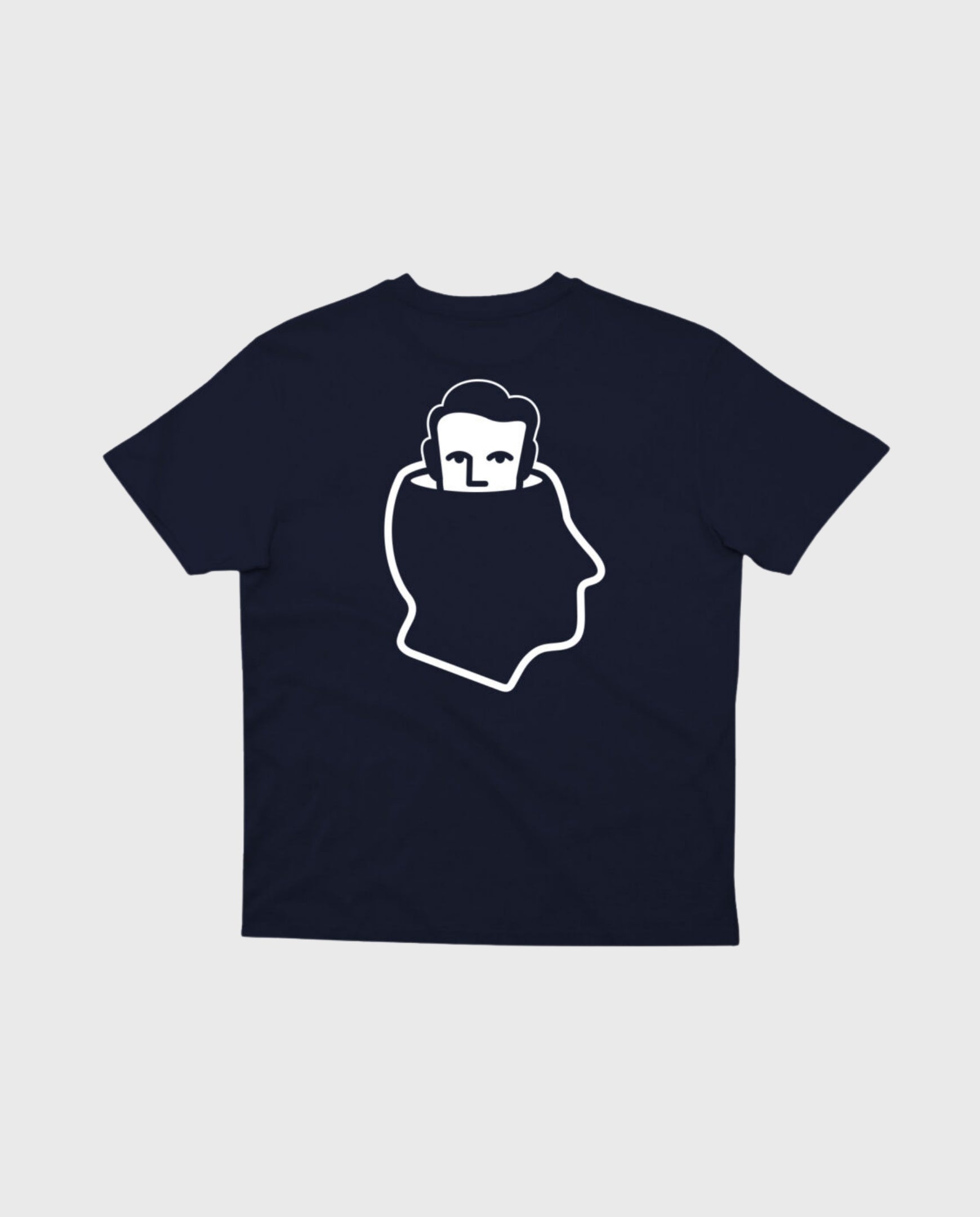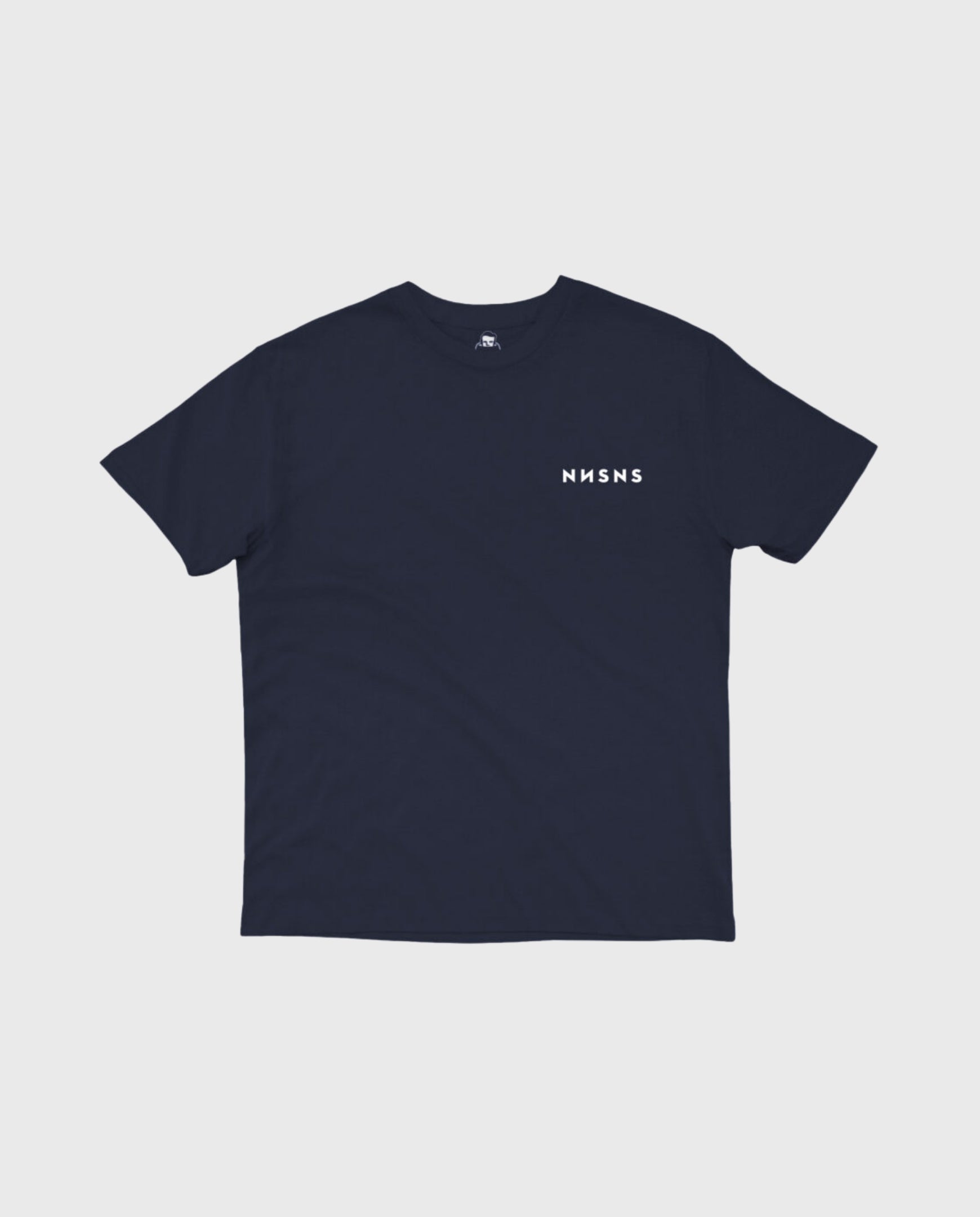 Donkerblauw t-shirt van NNSNS met op de achterkant het logo.