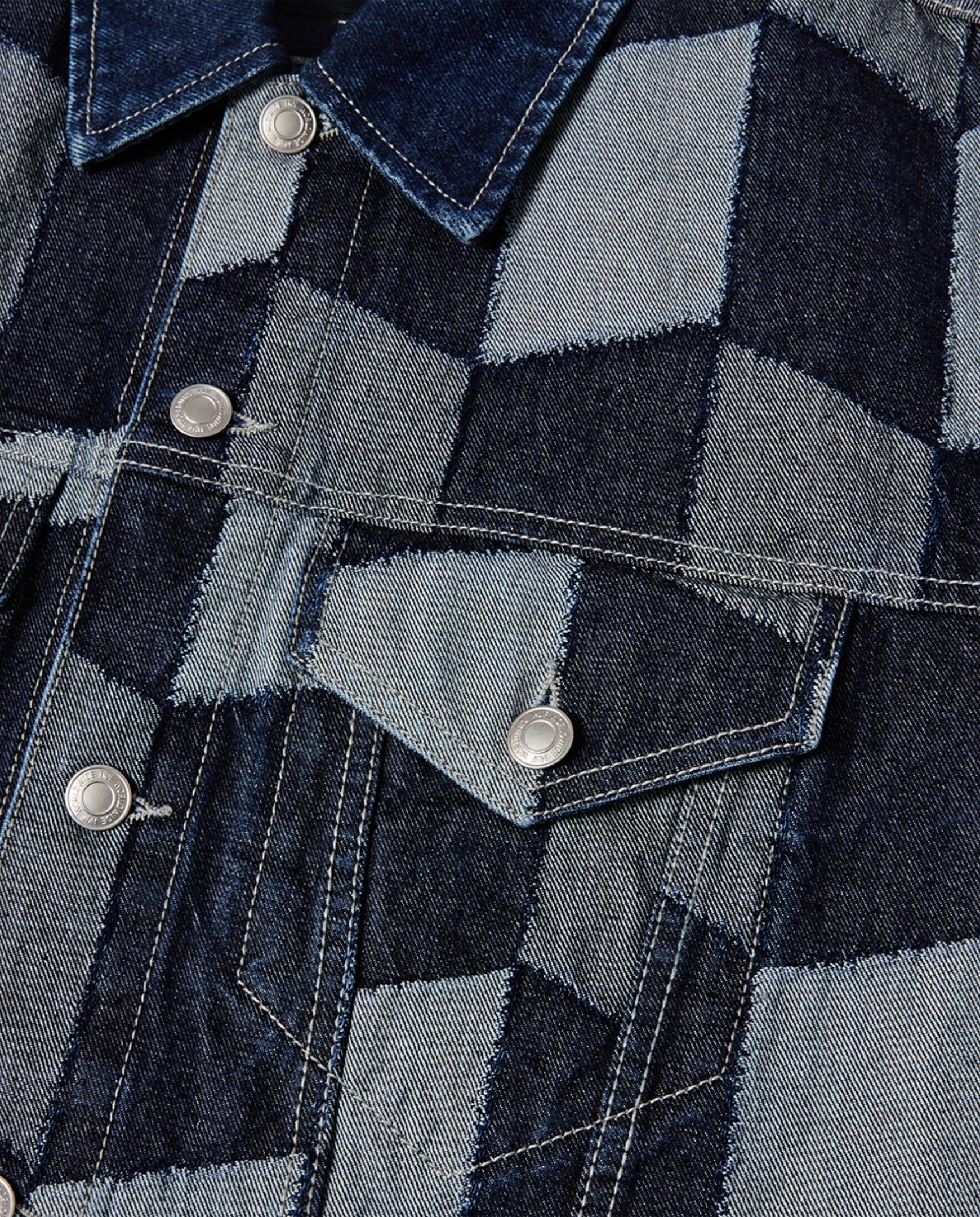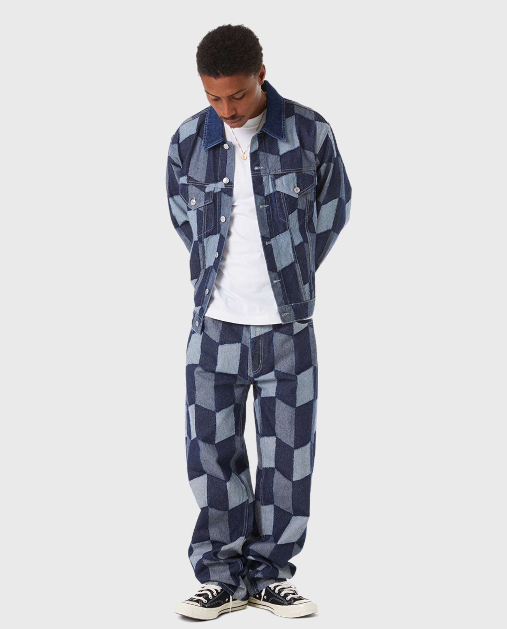 Deze unieke denim jacket van huf komt in een all over print. Stand out met deze jeans jas. Je kan hem combineren met de bijhorende patchwork denim pants of je draagt hem apart.