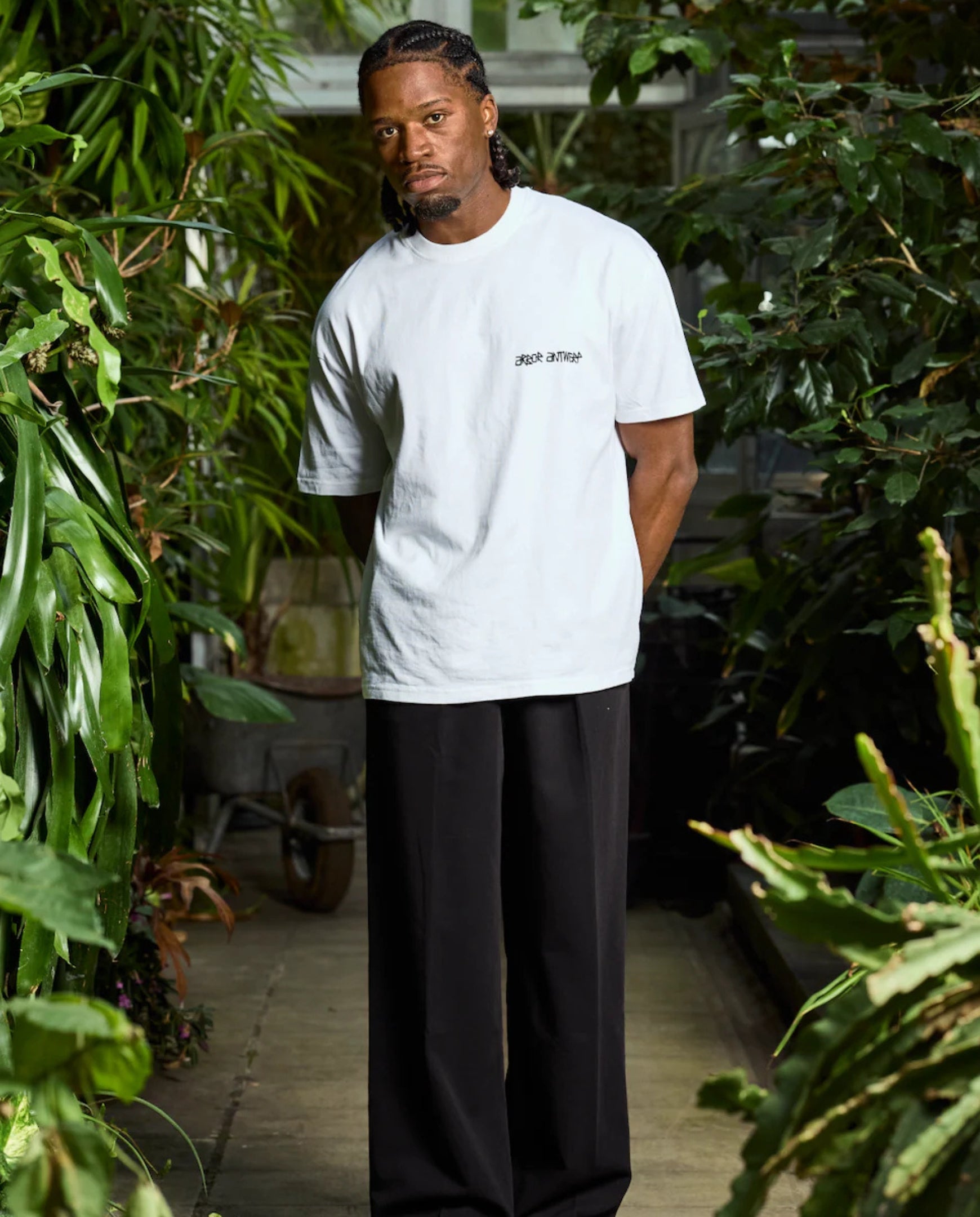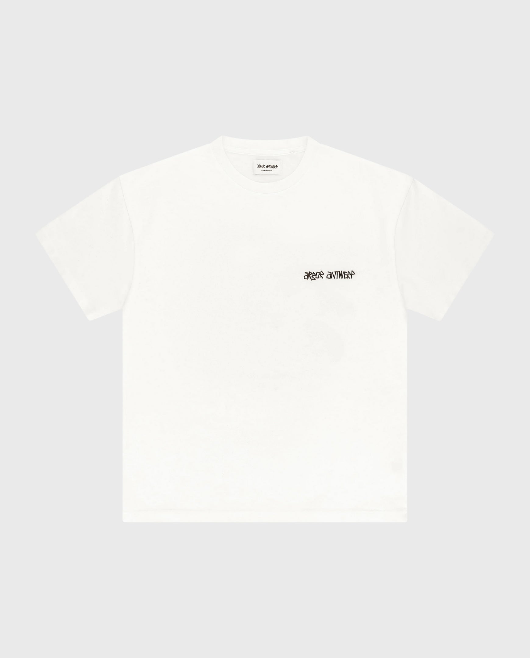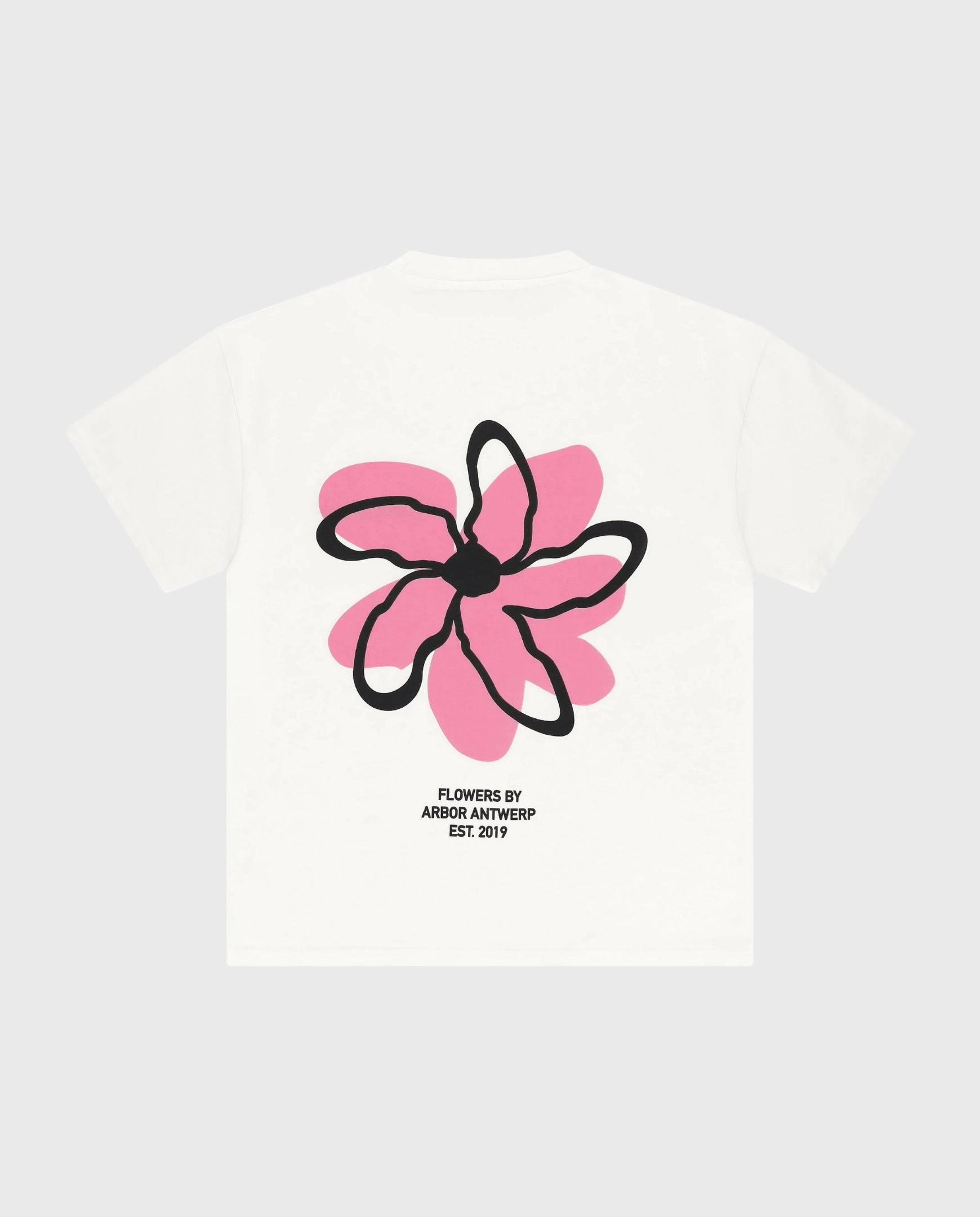 Wit T-Shirt van Arbor Antwerp met op de achterkant een roze bloem.