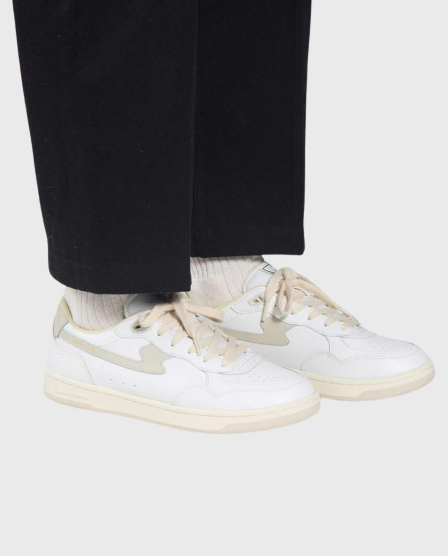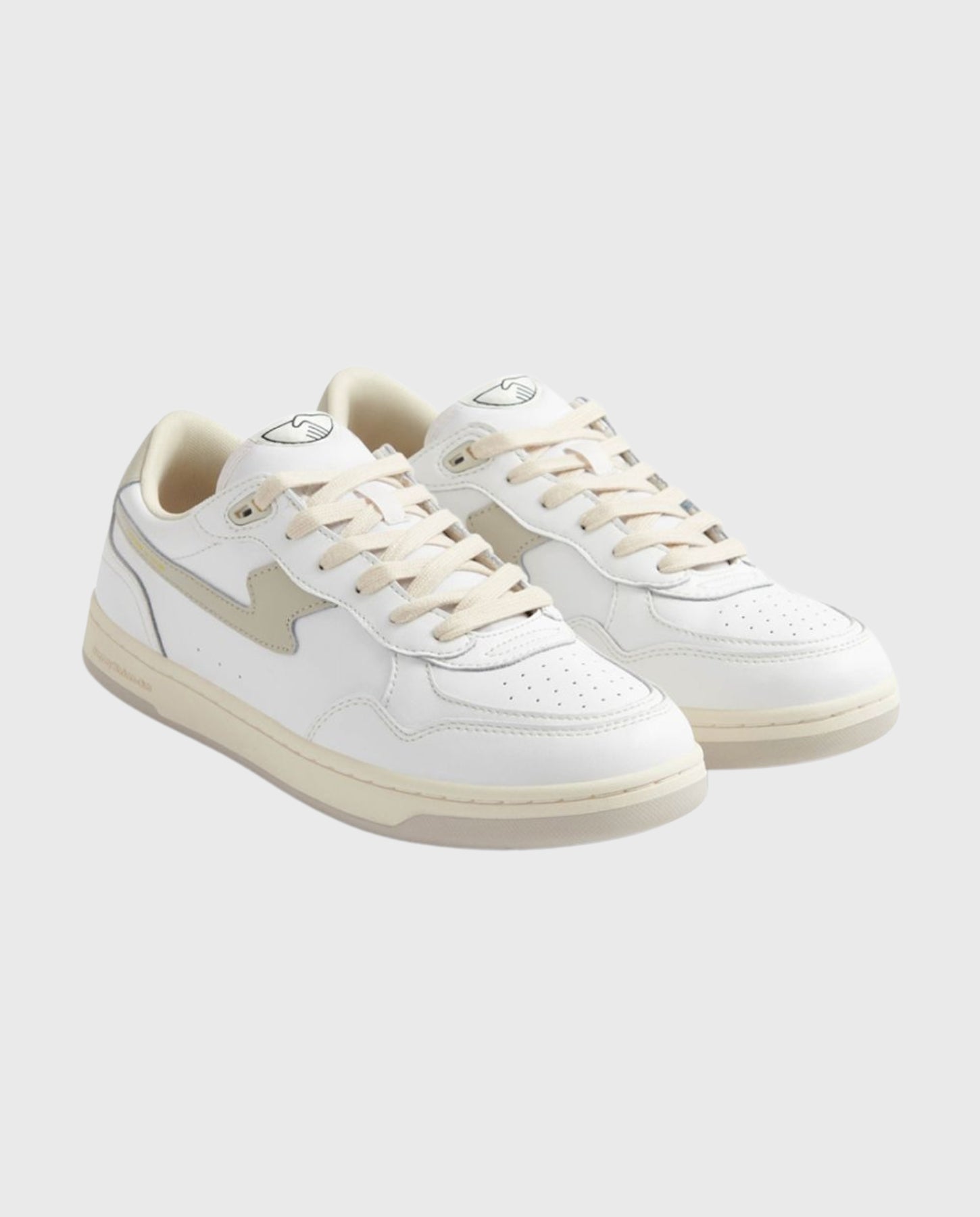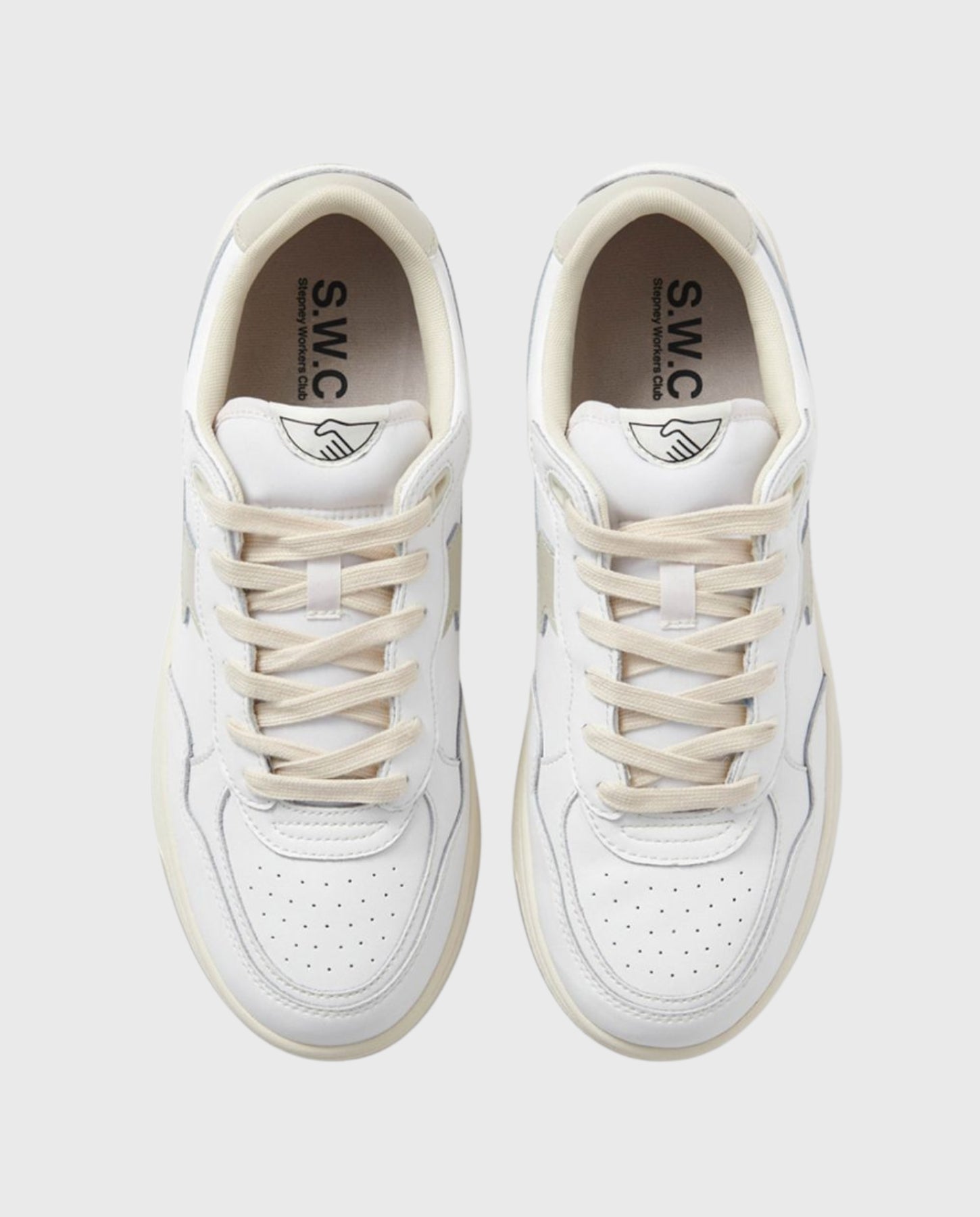 De SWC Pro Cup 01 is een witte sneaker, met een lichte gumkleurige zool. Afgewerkt met een 'putty' kleur.