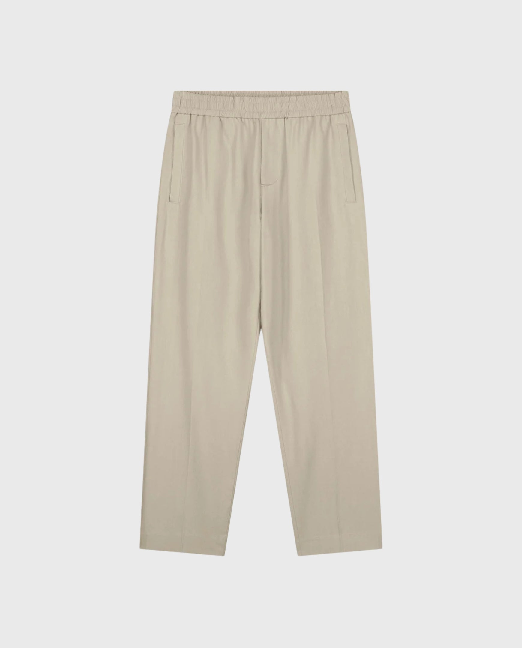 De Slim Elasticated Trousers in het beige zijn verfijnd en relaxed tegelijk. De katoenen en tencel-mix voelt koel aan en valt soepel, terwijl de lichtgroene kleur makkelijk combineert met zomerhemden of T-shirts.