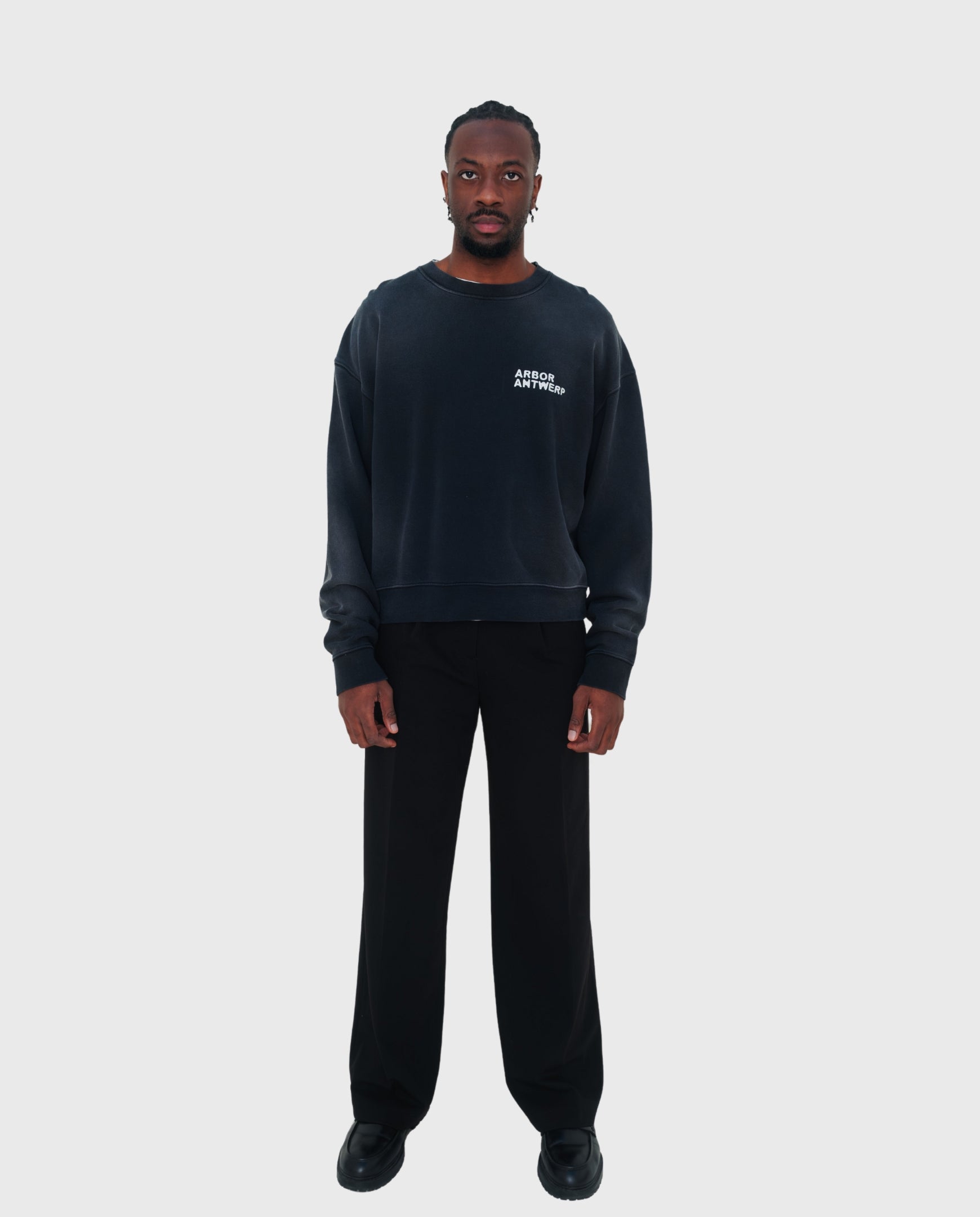 Zwarte "sunfade" crewneck van Arbor Antwerp. Gemaakt van 400 GSM en 100% organisch katoen. Voorkant is geborduurd.