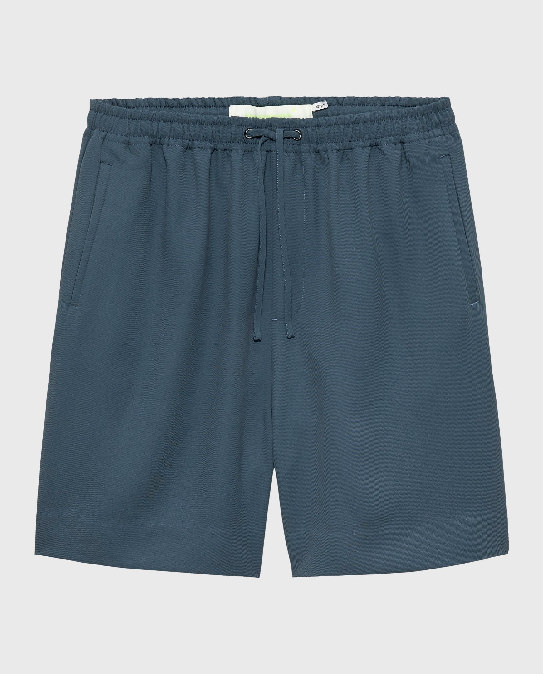 These shorts are cut to a relaxed fit with a mid-rise waist and an abo-ve-the-knee length. They feature an elasticated waistband with dra- w cords, welt side pockets, and a back patch pocket. Finished New Amsterdam woven label.