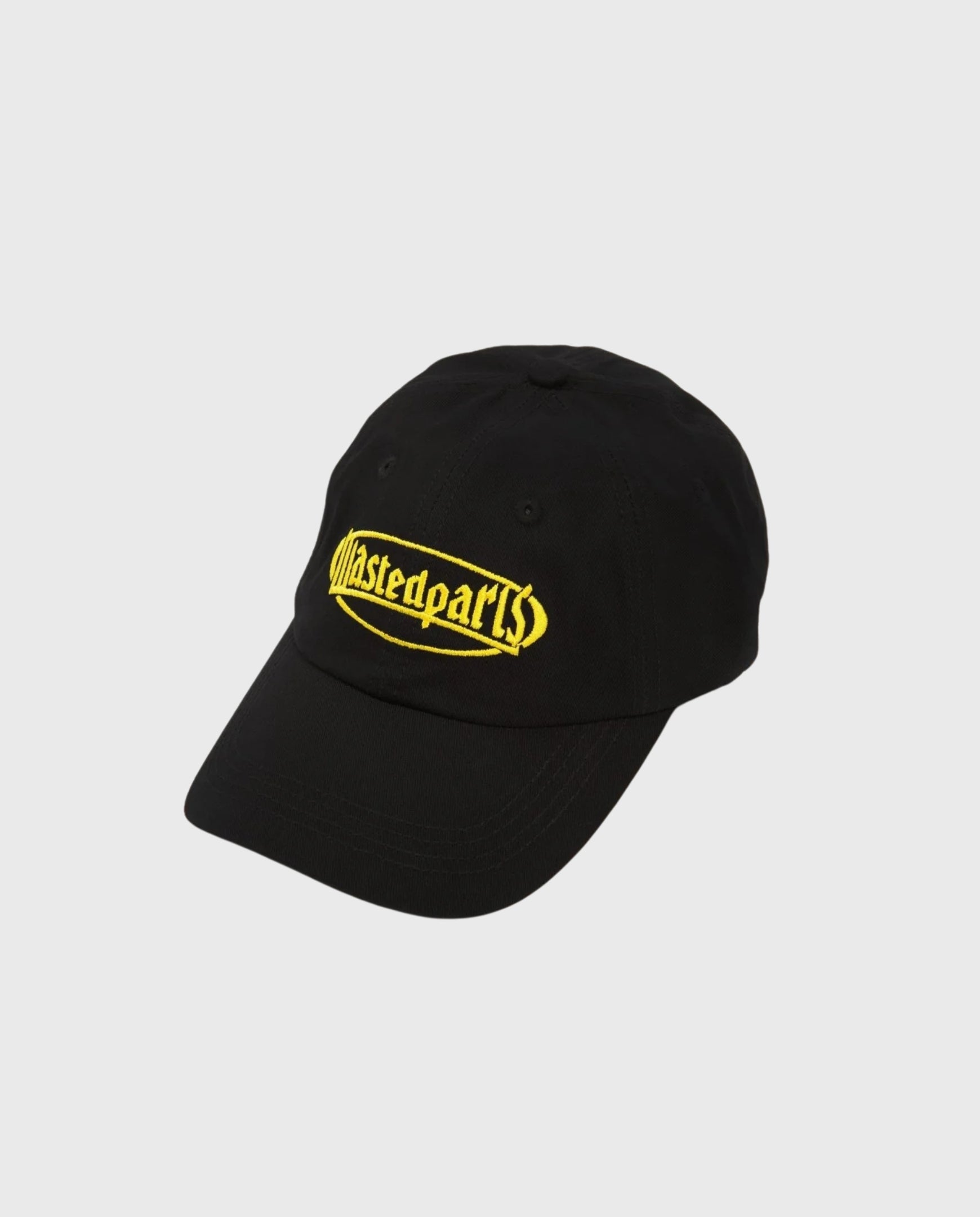 Zwarte Wasted Paris pet. Geel geborduurd logo op de voorkant.